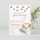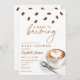 Diese stilvolle Baby-Dusche-Einladung beinhaltet Kaffeebohnen und eine Tasse Kaffee und kann mit all Ihren speziellen Feierungshinweisen personalisiert werden, mit Ihrem QR-Code und Veranstaltungsdetails auf der Rückseite. Entwickelt von Thisisnotme©