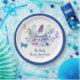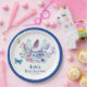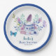 Ein Baby braut Baby Party Baby Dusche Papier Teller.Diese geschlechtsneutrale Babydusche bietet Teetassen mit lila, blauen und rosa Blume und Schmetterlinge mit einem Makaron.Eine perfekte geschlechtsneutrale rustikale Babydusche Tee Party Thema.