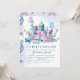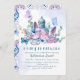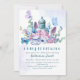 Es ist Zeit für Tee mit der Mutter zu sein! Diese moderne und elegante Schrift-Typografie-Babydusche lädt zu einem Vintagen Teekessel mit Aquarellfarben-Blume in Blau, lila und Rosa mit botanischen Blätter und Grünpflanzen mit Aquarellblau ein.Eine perfekte Babydusche-Tee-Party Einladung.Die Rückseite der Karte ist blau, rosa und weiß antikes Muster.