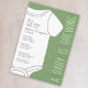 Ein lustiges Duschthema - Ein Baby ist Brewing! Diese Babydusche-Einladung beinhaltet einen niedlichen Baby-T - Shirt mit grünem Hintergrund und modernen kalligraphischen Schriftart für die zukünftigen Eltern. Fügen Sie die Mama-zu-werden Informationen mit Party-Informationen und wo die neue Mutter für Geschenke registriert ist. Dieses übergroße Baby Tee enthält alle Party-Informationen. Ein einfaches, polka dot muster ist auf der Rückseite.