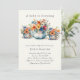 Ein Baby brütet die Einladung zur Baby-Dusche. Diese handgeschriebene Einladung zeigt eine hübsche Abbildung eines Teekapees und zwei Teacups, die mit Hütte-Garten-Blume auf einem sehr hellgelben Hintergrund bestechen. Die Rückseite der Einladung ist mit einem Blumenmuster von passenden Blume geschmückt. Hübsches Design für Mama-to-be und farbenneutral für eine Junge- oder Mädchendusche. Das Blumendesign ist perfekt für den Nachmittagstee, das Party im Garten, die Themen des Hauses usw.