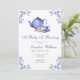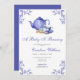 Dieses "Baby is Brewing" Baby Shower Invitation verfügt über eine lila Chinoiserie Teekanne und Teekup, die ein charmantes und elegantes Tee-Party-Thema schaffen. Die sanft blauen Töne und das zarte Design machen es zu einer perfekten Wahl für ein whimsical und einladendes Fest.
