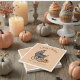 Ein skurriles, handgezeichnet Halloween "A Baby is Brewing" geschlechtsneutrales Babyduschdesign in schwarzer Tinte. Auf einem pastellfarbenen orangefarbenen Hintergrund finden Sie eine antike Babykutsche, eine schwarze Krähe und Kürbis. Name & Ereignis und Datum können bearbeitet werden.
