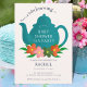 Eine Tee-Party-Babydusche mit einer aquamarinen blauen Teekanne. Das Design besticht durch eine niedliche, aquamarine Teekanne mit farbenfrohen Blume und grünem Blattwerk. Das Design ist minimalistisch und modern. Über der Teekanne und im Einklang mit dem Tee-Party-Motto stehen die Worte "es gibt ein Babybrauen". Die Einladung kann personalisiert sein, Ihre Babydusche mit Details zu versehen.