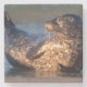 Ein Baby-Siegel, das es hebt, ist Schwanz Steinuntersetzer