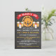 Ein Baby macht Spaß beim Brennen, Babyduschen mit Bierfässern, Babyflaschen und Bier vor einem Kalkboard-Hintergrund. Handgezeichnete Abbildung von McBooboobs