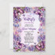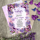 Lila, lila und lavendelfarbene Botanicals und Schmetterlinge bilden die Basis für dieses einzigartige Rahmen-Design "A Baby Butterfly Is On The Way" Mädchen Shower Design. Auch ein mehrfarbiger Aquarell und Spritzer-Hintergrund auf der Rückseite. Composite Design von Holiday Hearts Designs.