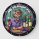 Dieses spielerische runde Bild zeigt einen Jovialmann mit einer Kappe, Bart und Brille. Er hält ein Glas Wein auf und genießt eine Zigarre mit zwei Flaschen und Trauben auf dem Tisch. Die Grafik grenzt an den Satz "HOPE YOU BROUGHT WINE", der es zu einem perfekten Stück für jeden macht, der erlesene Getränke und einen guten Spaß schätzt.