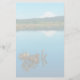 Auf der klaren Oberfläche eines Gewässers, ist ein Spiegelbild einer Gruppe von Baumzweigen, die aus dem Wasser hervorstehen, und Mount Rainier hinter einer Linie von Bäumen, die den Körper des Wassers umschließt. Copyright © 2018 Kimberly J Tilley.