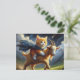 Ein bezauberndes Ingwerkitten, das eine Ziege reit Postkarte