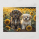 Ein Bild von zwei Welpen auf dem Feld der Sonnenbl Postkarte