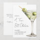 Eine ein bisschen ältere Geburtstagskarte. Diese lustige flache Karte zeigt auf der Vorderseite ein Wasserfarb-Martiniglas mit Oliven sowie den Ausdruck „Ein Tini bisschen älter“ in einer unterhaltsamen handgeschriebenen Schrift. Der Name und das Alter stehen unten in einer sauberen Mischung aus Serifenschrift und Skript-Schriftarten für eine persönliche Note.