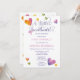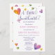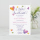 Script-Text "A Little Sweetheart" mit Serif-Schriftart "Is On Your Way" wertvolle Aquarellherzen entwerfen Baby Sprinkle Einladung mit lila und rosa Text. Ideal, um die anstehende Ankunft Ihres süßen Kleinen zu feiern! Composite Design von Holiday Hearts Designs (Rechte vorbehalten).