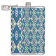 ein blaues und grünes Muster mit weißem Hintergrun Flachmann