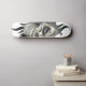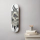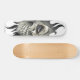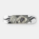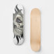 Dieses ist ein Skateboard mit einem lodernden Schädelentwurf. Anstelle des Weiß verwendet es die regelmäßige Farbe des Brettes.