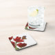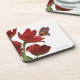 ein Blumenstrauß der roten Tulpen wird von einem Untersetzer