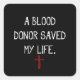 Ein Blutspender Rettete mein Leben Christlich Quadratischer Aufkleber