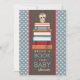 Auf einem Bücherstapel in Rot und Blau steht eine hübsche kleine Eule, die auf eine niedliche Einladung hin zu einer Babydusche mit Babyausstattung in einem Buch hinunterführt. Auf der Rückseite befindet sich ein Beispieltext, der es frage, die Lieblingssendung der Kinder zu bringen, um die Mama für die Erstellung der Babybibliothek zu starten. In trendigem Braun- und Denim-Blau mit Polka-Dot-Hintergrund wird dieses schöne Design jedem neuen Mami gefallen. Auch Buchzeichen-Aufkleber enthalten in der Einladung für jeden Gast, ihre Buchgeschenke zu unterzeichnen und zu kennzeichnen.
