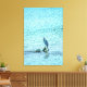 Ein minimalistisches Foto eines Herons, das auf einem Baum steht, der nicht vollständig unter dem Wasser versunken ist. Die Oberfläche des Wassers wird durch den Wind gestört und die Wellen bilden einen blauen, strukturierten Hintergrund. Image Copyright ©2018 Kimberly J Tilley.