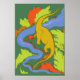 Dieser Diplodokus erstickt seinen Durst inmitten einer bunten Landschaft.