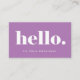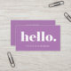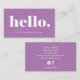 Diese skurrilen und super stilvollen, blauen und weißen Visitenkarten sagen einfach "Hallo". in fett, modernem, weißem Text auf einem lavender lila Hintergrund. Fügen Sie einfach Ihre Kontaktdaten für Social Media auf der Rückseite ein.
