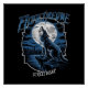 Ein einsamer Wolf, der den Vollmond auf einem fels Poster