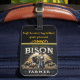 Ein engagierter Bauer und ihr Bison Herd bei Sonne Gepäckanhänger