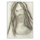 Eine einfache Schwarzweiss-Bleistiftskizze von einem ernsten schauenden Jesus in einer Robe