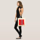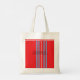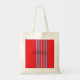 Ein farbenfroh rotes und blaues Muster, umgeben vo Tragetasche