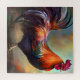 Eine bezaubernde Hahnenkunst, die die lebendige Persönlichkeit eines Hahnenmeisters abbildet, wo ein majestätischer Hahn mit leuchtend rotem Kamm, glänzenden Federn und scharfen Augen eine prächtige Pose antrifft, während der Hintergrund zu einem fantastischen Wunderland voller Farben und fantasievoller Elemente wird.