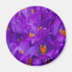 Ein schönes Naturfoto eines Feldes von blühenden Crocuses, lebendige lila Blütenblätter mit hellgelben Orangenzentren.