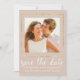 Elegantes und elegantes Gold, Rose und Elfenbeinfarben. Ihr Foto ist umgeben von einem goldenen Rahmen mit einem modernen Elfenbeinweiß-Punktmuster. Save the Date ist in einem schönen Skript-Schriftart geschrieben. Ihre Namen, Hochzeitstermin und Ort folgen. Das Punktmuster deckt den gesamten Rücken ab.