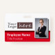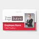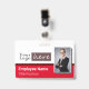 Abzeichen für Firmenname oder Firmenangestellte mit schwarz und grau gestreiftem Hintergrund leicht anzupassen. Der gesamte Text ist einstellbar. Fügen Sie Ihr eigenes Firmenlogo hinzu. Made für lange horizontale Logos. Wenn die schnelle Vorlagenanpassung für Ihr Logo nicht funktioniert, klicken Sie auf die weitere Option anpassen, um Ihr Logo zu löschen und auf die Karte hinzuzufügen. Eine Option für ein Foto. Die Option rot.