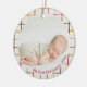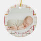 Moderne, farbenfrohe Foto-Ornament mit einem roten, grünen und gelben Gitter mit "My First Christmas 2025". Ein perfekter Sake für den ersten Babyurlaub.