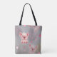Man kann den Einkaufstag mit dieser süßen Tasche aufhellen, auf der sehr süße rosa Ferkel mit glänzenden weißen Punkten und rosa Sternen abgebildet sind. Das Design wurde am Computer mit einer großartigen Software erstellt.