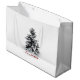 Große weiße, glänzende Geschenktasche mit einem Bild, vorne und hinten, von einem einsamen, schneebedeckten Kiefernbaum und "Frohe Weihnachten", darunter rot bedruckt. Siehe dazu passende Geschenktüte, Konfetti, Gefallen-Tag, Etikett, Rundaufkleber und Packpapier. Siehe die gesamte Holiday Gift Bag Kollektion in den SPEZIELLEN TOUCHS | Abschnitt Gastgeschenke.