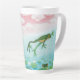 Ein grüner Frosch springt in den Teich - Buch Illustration. Jumping Frog Thema. Der ruhige Aquamarine-Teich mit blass rosa Seerosen und grünen Blätter. Ein grüner Frosch springt in den Teich. Schnauze! Das Geräusch des Wassers.