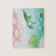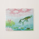 Ein grüner Frosch springt in den Teich - Buch Illustration. Jumping Frog Thema. Der ruhige Aquamarine-Teich mit blass rosa Seerosen und grünen Blätter. Ein grüner Frosch springt in den Teich. Schnauze! Das Geräusch des Wassers.