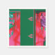 Das Design scheint ein digitales oder stilisiertes Kunstwerk zu sein, das durch eine vertikale grüne Linie in zwei Paneele unterteilt ist. Eine ausführliche Beschreibung: ・ Links Panel: o Verfügt über eine verzierte Halskette, die in der Luft über einem lila Felsen hängt. ・ Rechtes Panel: o Diese Seite ist eine spiegelnde und leicht veränderte Version des verlassen. o Die Halskette fehlt. o Es gibt einige Variationen in der Platzierung des Blattwerks. Die symmetrische Zusammensetzung und die lebhaften Kontrastfarben erzeugen einen visuell auffälligen Effekt.