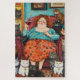 Das Bild zeigt eine fröhliche, zuvorkommende Frau, eine kinderlose Katzenfrau, die bequem in einem gemütlichen Sessel sitzt und ein Glas Rotwein hält. Sie ist umgeben von einer Reihe von bunten und ausdrucksvollen Katzen, von denen viele entweder auf ihrem Schoß sitzen, an ihrer Seite oder in der Nähe stehen. Die Szene strahlt ein Gefühl von Wärme und Entspannung aus, mit lebhaften Farben, spielerischen Mustern und einer lebhaften Atmosphäre, wie die Frau lächelt zufrieden und die Gesellschaft ihrer kranken Gefährten genießt. Die weiße und fröhliche Umgebung verleiht dieser abscheulichen, herzlichen Illustration einen besonderen Charme.
