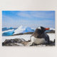 Ein Gentoo Pinguin, der auf den Felsen der Antarkt Puzzle