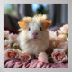 Ein geschmeidiges, flauschiges Guinea-Schwein mit Rose. Mit seinem weichen, lockigen Fell und seiner spielerischen Persönlichkeit wird es jedem, der es trifft, Freude bereiten.
