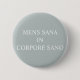 Ein Abzeichen mit dem lateinischen Zitat "mens sana in corpore sano", das in "einen gesunden Geist in einem gesunden Körper" übersetzt. Der Begriff stammt aus dem antiken Griechenland und wurde später vom römischen Dichter Juvenal verwendet. Die moderne Weltanschauung des Sprichworts konzentriert sich auf die Bedeutung von Gleichgewicht und Harmonie zwischen Geist und Körper. Weiße Schrift auf grauem Hintergrund.