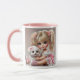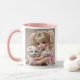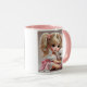 Ein glänzendes Mädchen und ihr süßes Hündchen. Tasse