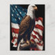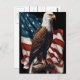 Ein Glatzenadler, der auf einer schwingenden amerikanischen Flagge steht und Patriotismus und Freiheit symbolisiert.
