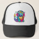 Ein glücklicher Drache mit Kopfhörern, der Musik h Truckerkappe