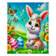 Ostern im Frühlingsgarten sitzt ein Hase und freut über seine Ostereier, die er verschenken möchte!