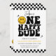 EIN GLÜCKLICHER TYP - Dieses super niedliche Retro ONE HAPPY TYP 1. Geburtstag Einladung zeigt eine gelbe und schwarze Retro-Smileface mit Blitzen, und die Fähigkeit, das Foto Ihres kleinen Typs auf der Rückseite. Dieses One Happy Typ Geburtstagslädt wird sicher jeder One Happy Typ Geburtstagsparty abgeschlossen! Mit der einfach zu bedienenden Zazzle-Software (kein Download erforderlich) direkt in Ihrem Browser erwerben Sie einfach alles an einem Ort, an dem Sie sich selbst personalisieren können. So einfach ist es!