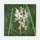 Ein Gemälde einer Gartenfee erschreckte im Gras, während sie um einen Garten fluttert.