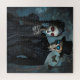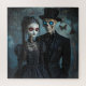 Ein gotisches Paar mit einem Puzzle mit leuchtenden Augen. © Jigsaw Wonderland at Zazzle. Ein gotisches Skelettpaar, alle in formaler Kleidung gekleidet.